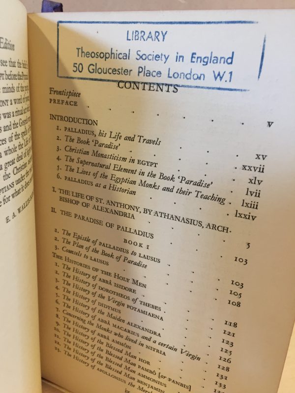 Being Histories of the anchorites, recluses, monks, coenobites and ascetic fathers of the deserts of Egypt, between A.D. 250 and A.D 400 circuited. Compiled by Athanasius, Archbishop of Alexandria; Palladius, Bishop of Helenopolis; Saint Jerome, and others. Translated out of the Syriac with Notes and Introduction by Sir Ernest A. Wallace Budge.