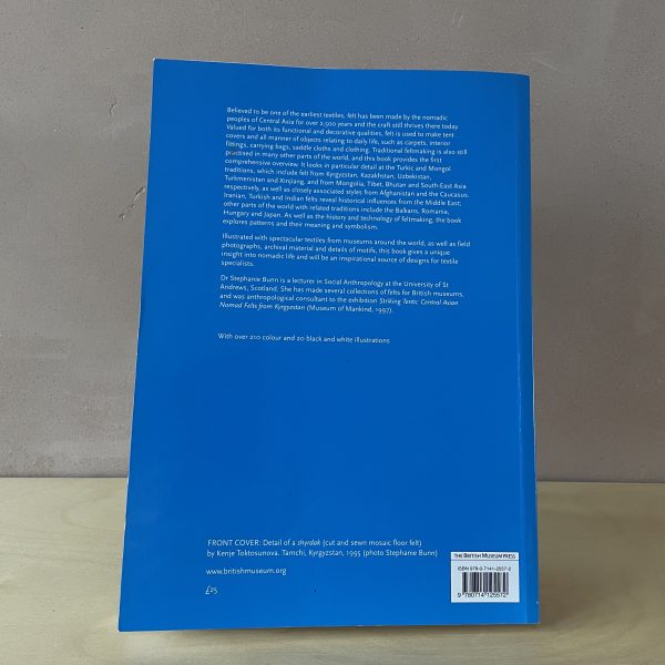 Believed to be one of the earliest textiles, felt has been made by the nomadic peoples of Central Asia fo over 2,500 years and the craft still thrives there today. Valued for both its function and decorative qualities, felt is used to make tent covers and all manner of objects relating to daily life, such as carpets, interior fittings, carrying bags, saddle cloths and clothing. Traditional feltmaking is also still practised in many other parts of the world, and this book provides the first comprehensive overview. It looks in particular detail at the Turkic and Mongol traditions, which include felt from Kyrgyzstan, Kazakhstan, Uzbekistan, Turkmenistan and Xinjiang, and from Mongolia, Tibet, Bhutan and South-East Asia respectively, as well as closely associated styles from Afghanistan and the Caucasus.