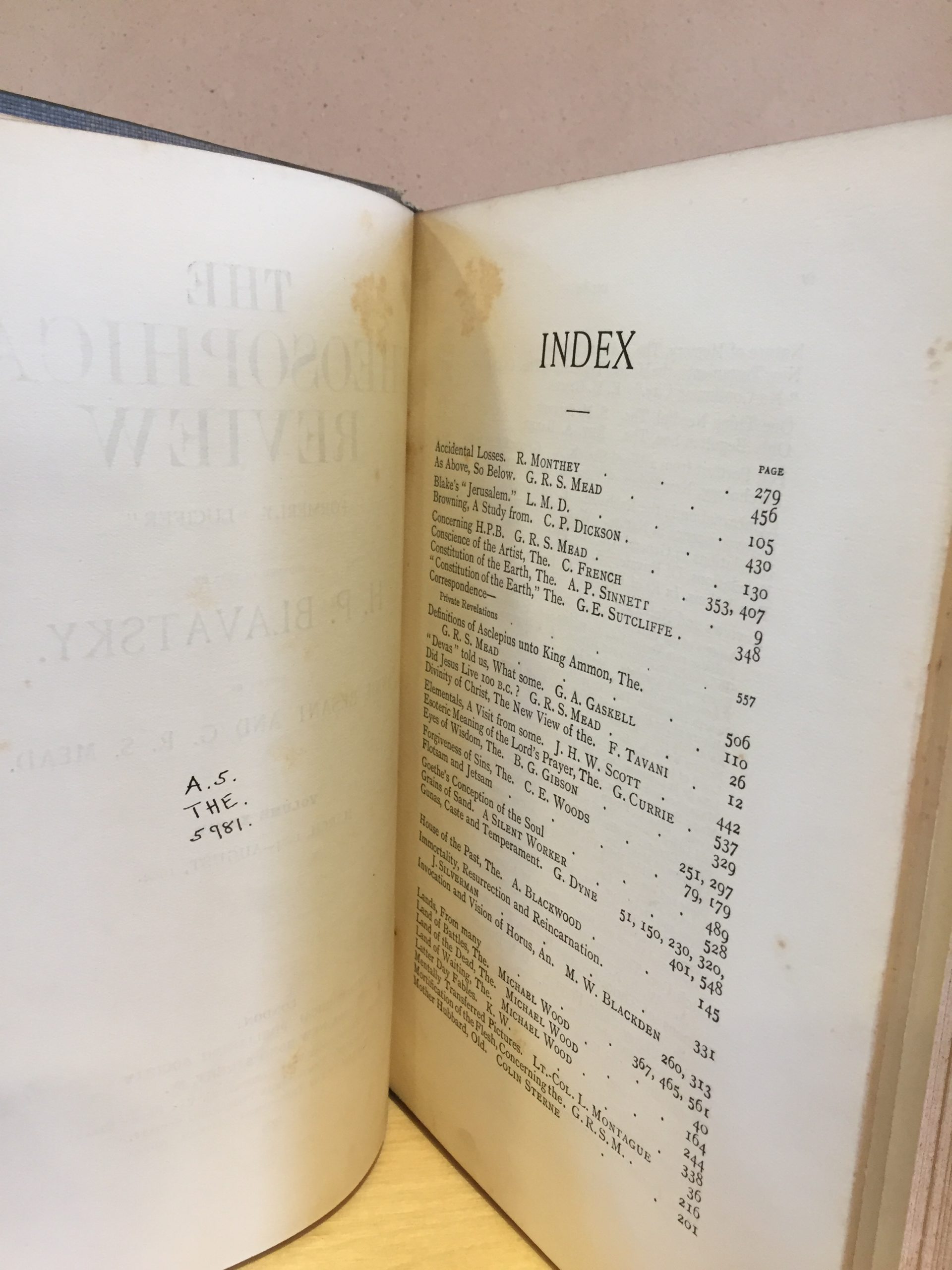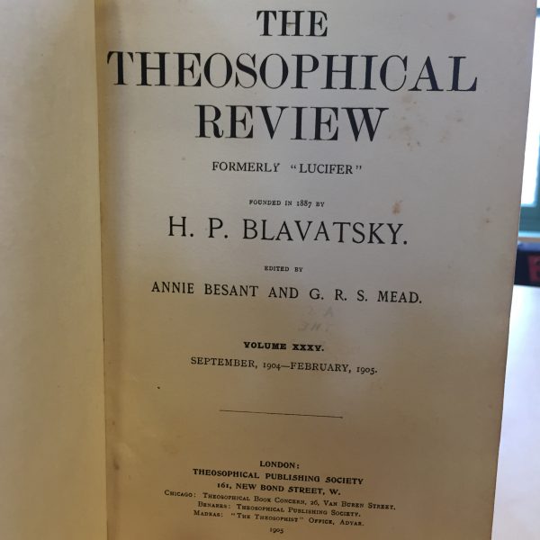 Formerly Lucifer, founded by H. P. Blavatsky, edited by Annie Besant and G. R. S. Mead.