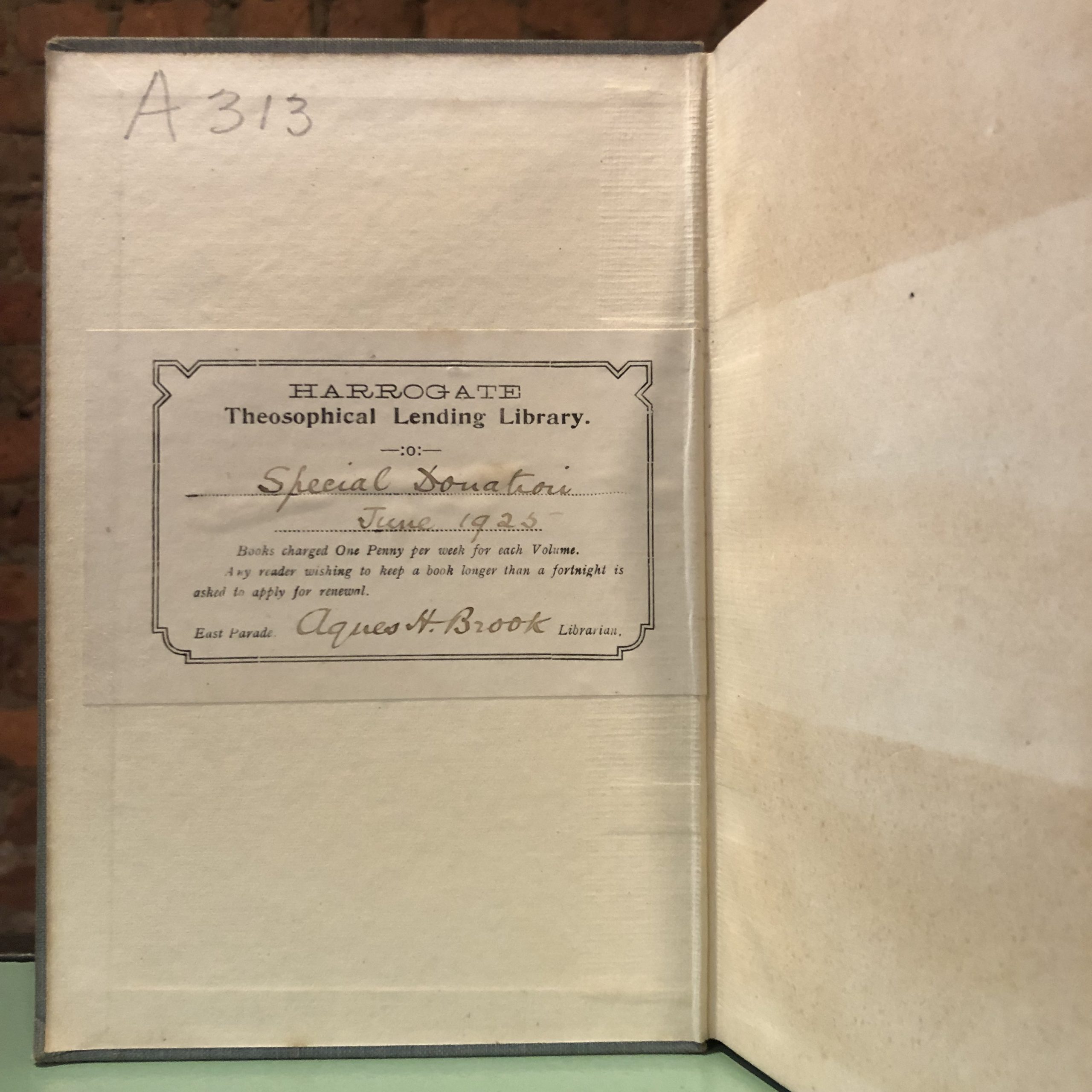 First edition. Hardcover. Blue cloth binding. Shelf wear to cover and spotted on spine. Formerly belonging to the Theosophical Lending Library, Harrogate. Library stamps to endpapers and marking on spine. Infrequent underlining in pencil. Spine leans slightly.