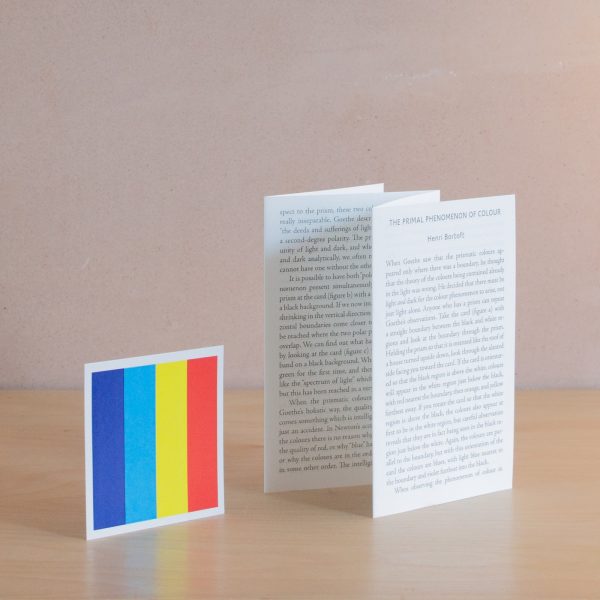 The colour experiments — to be viewed through the prism included in this volume — raise important questions concerning the dissolving nature of the boundary between light and dark, mind and matter, the invisible and visible.