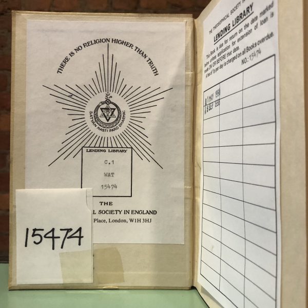 First edition. Octavo. Hardcover. White cloth binding. Gold embossed cover. Cover shows an outline where tape had lasted on a library marking. Stamps to endpapers and title page. Formerly belonging to the Theosophical Lenindng Library, Gloucester Place. Pen marking text block. Leans slightly