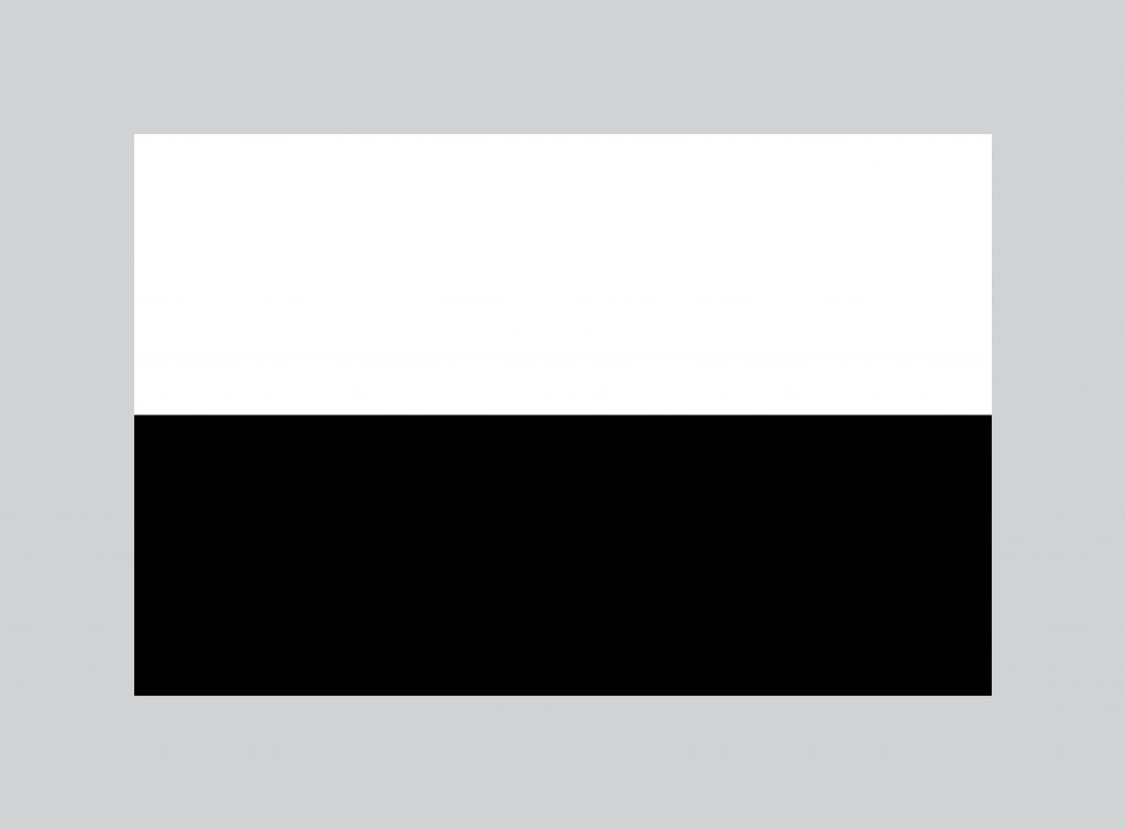 It is possible to have both “poles” of the colour phenomenon present simultaneously. Look through the prism at the card (figure b) with a broad white band on a black background. If we now imagine the white space shrinking in the vertical direction so that the two horizontal boundaries come closer together, a point will be reached where the two polar phenomena meet and overlap. We can find out what happens when they do by looking at the card (figure c) with a narrow white band on a black background. Where they meet we see green for the first time, and there is now something like the “spectrum of light” which Newton described, but this has been reached in a very different way.